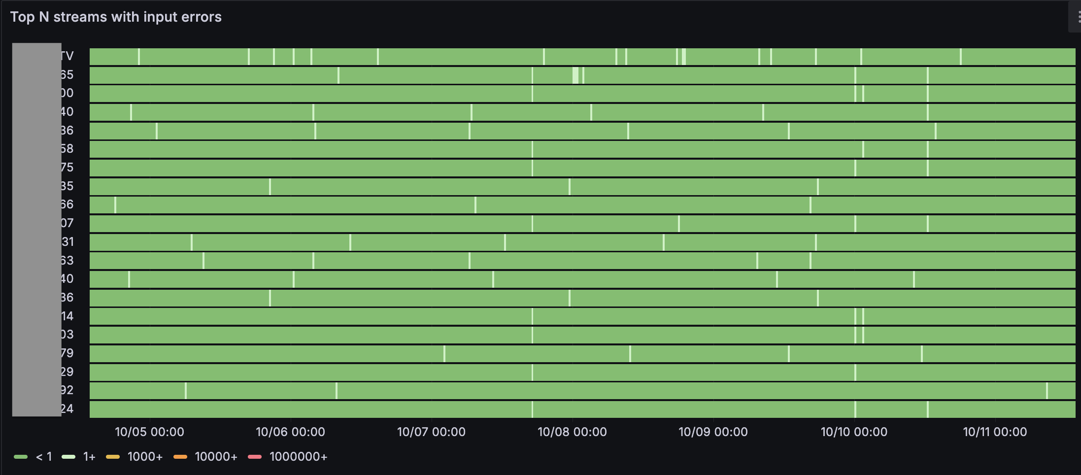 Это самый главный график для мониторинга состояния входа. Из всех потоков вашего сервиса (от единиц до сотен тысяч) сюда выводятся самые проблемные. Дальше можно выбирать с самого верха и анализировать детали.
