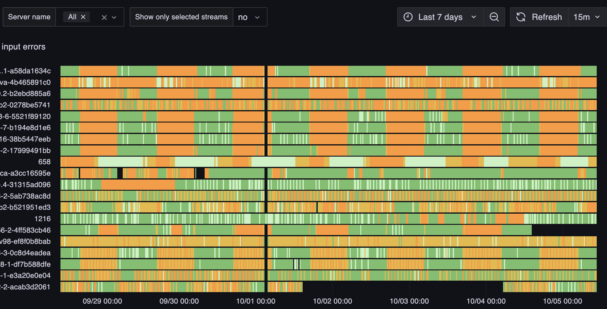 Важно пользоваться разными временными диапазонами: и небольшим, чтобы увидеть свежие проблемы и на много дней, чтобы увидеть суточную периодичность.
