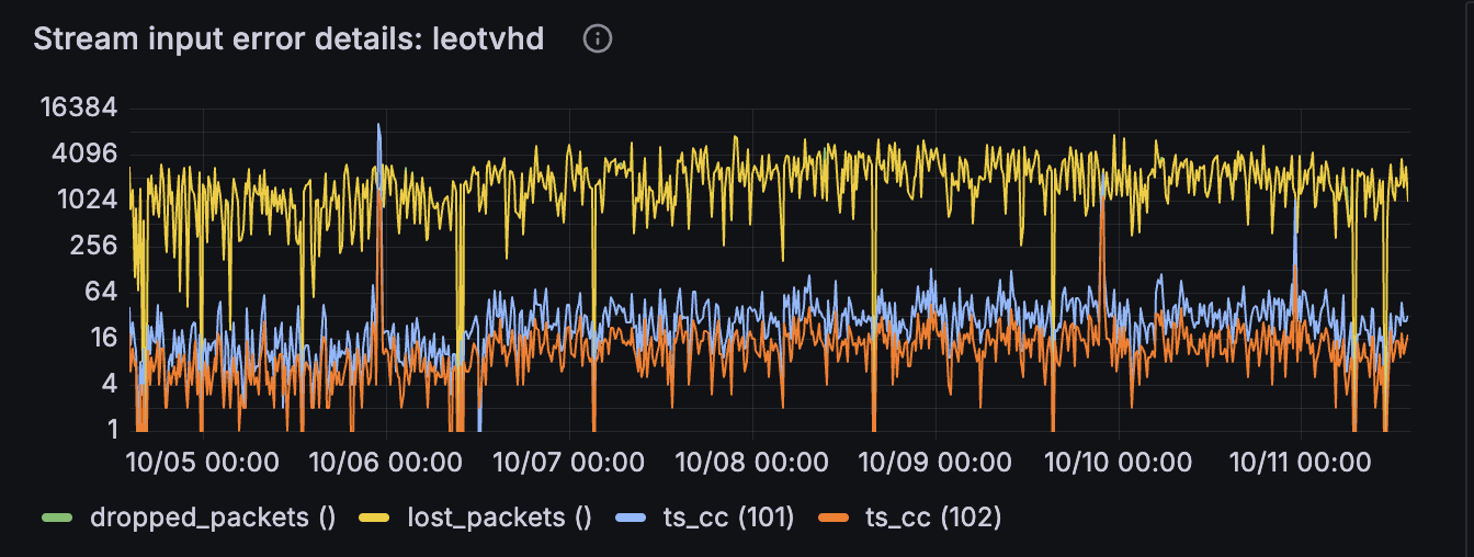 Самый важный график - это ошибки. Они должны быть на нуле и это достижимо. Всё что выше нуля - это проблема, которую надо решать. В большинстве случаев можно быть уверенным в том, что ошибка на графике - это рассыпание картинки или потеря звука/субтитров и т.п.