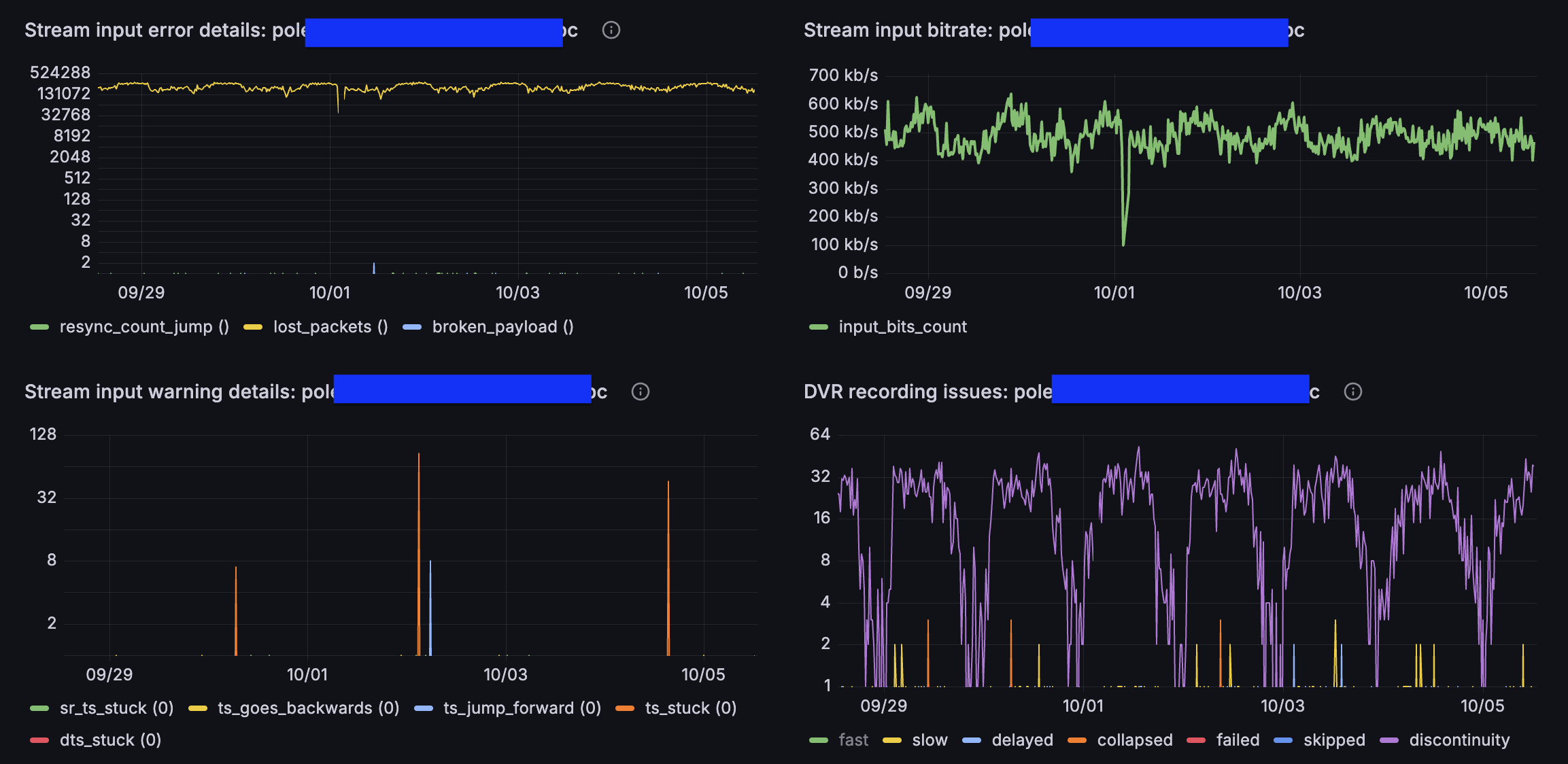 - adaptation_broken - сколько раз MPEG-TS adaptation field был невалидным. Как правило эта ошибка означает полный мусор на входе